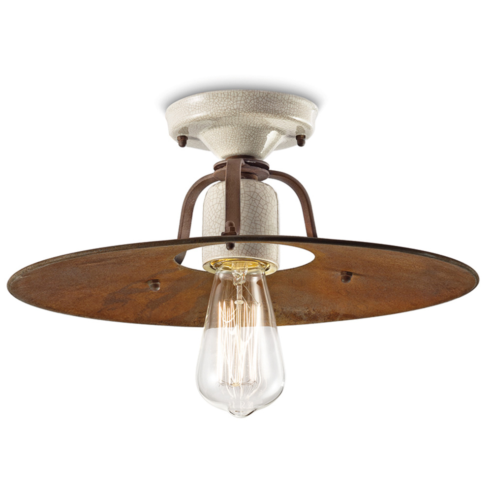 Ferroluce Grunge C1435 Plafoniera in Ferro Corten e Ceramica D.40 Cm