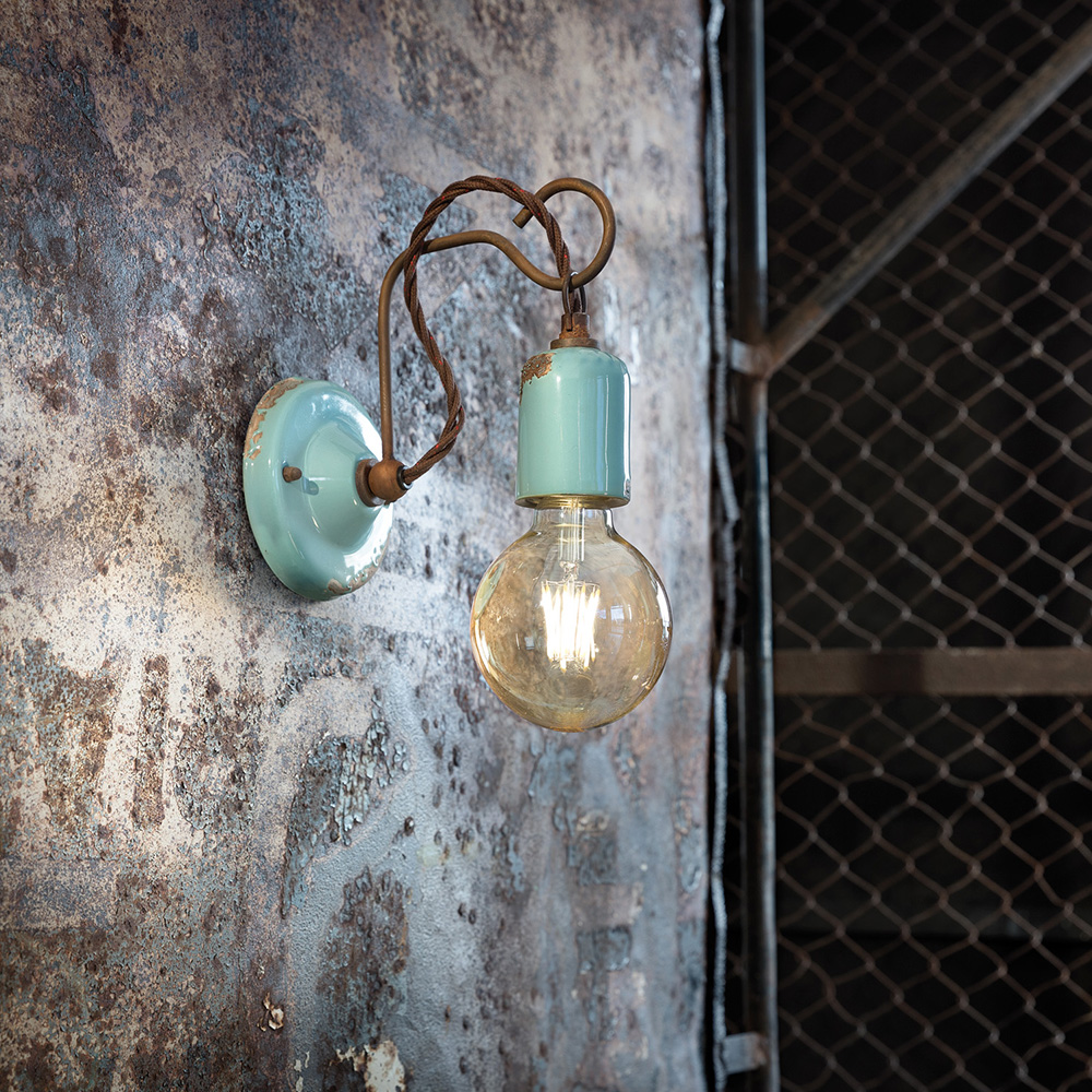 Ferroluce Vintage C665 Applique a Parete in Ferro e Ceramica Colorata